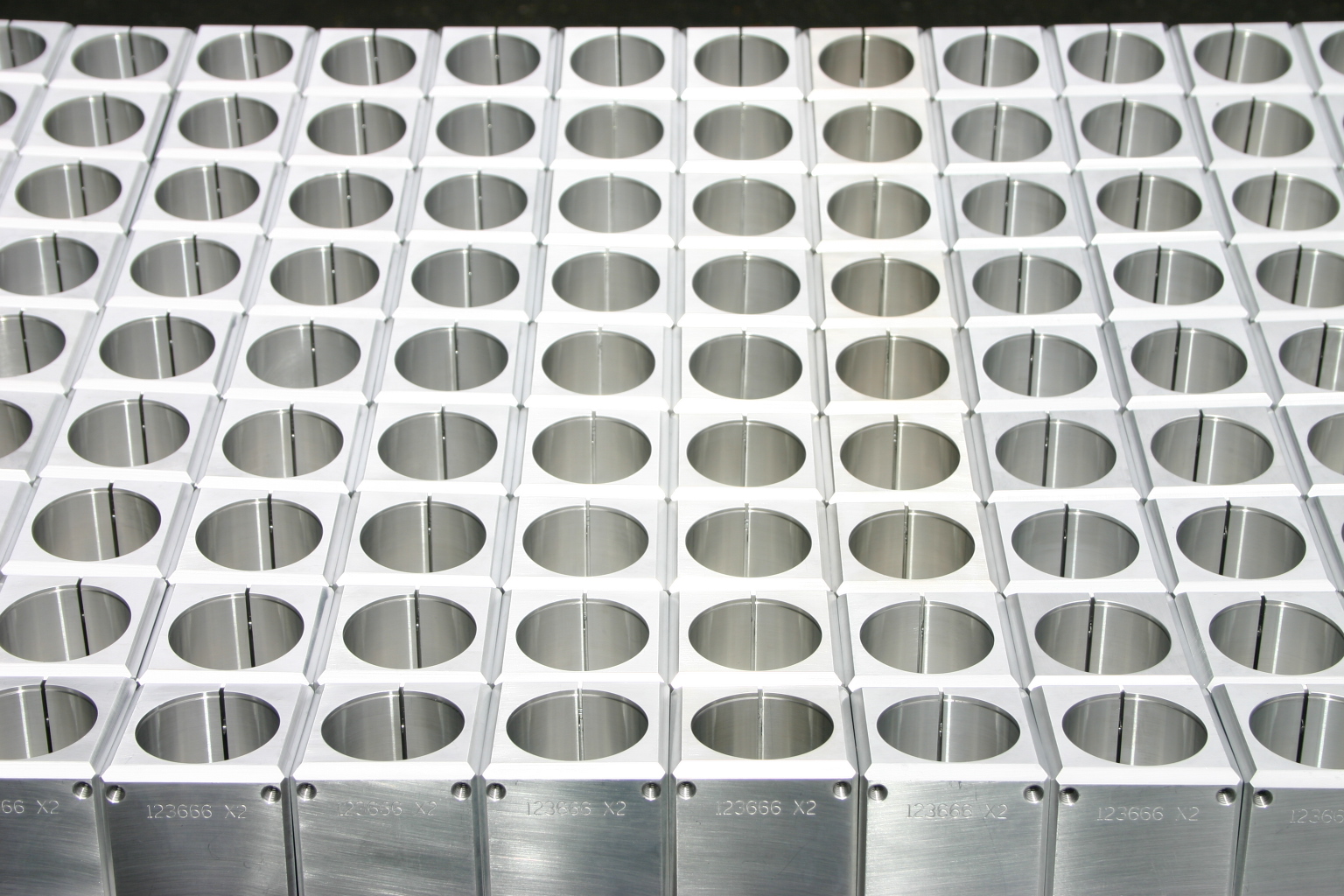 For a manufacturer of satellite communications systems, we manufacture several sizes of Scalar Plates. These are machined from aluminum to close tolerances, and are used to direct microwaves in a way similar to the way a lens directs light waves.